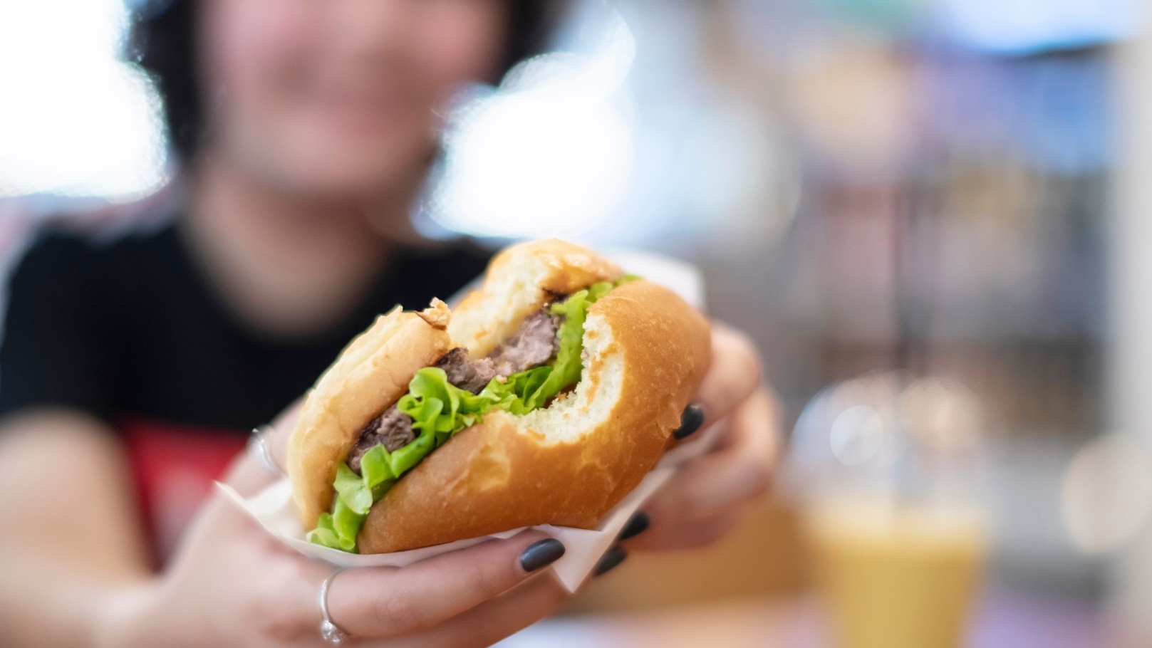قطعة من الدجاج المقلي المُغطي بالخس والمايونيز في الـ English Muffin مع البيض المقلي.