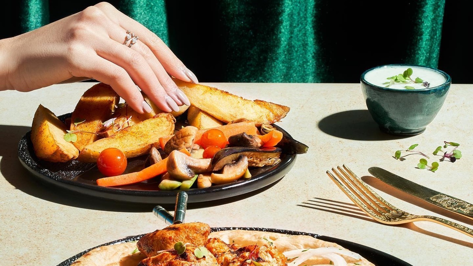 الإسباني مع الشيش طاووق والكباب ويقدم مع اثنين من الأطباق الجانبية، أو يمكنك