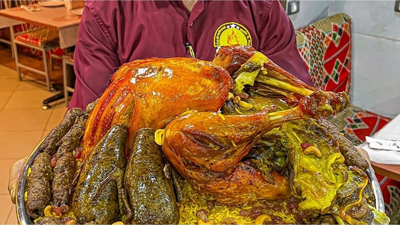 اللمة لا تكتمل بدون طعام شهي ، ومطعم "حضر موت شيخ المندي" بالمهندسين يوفر كل ما تحتاجه في العزومة، لأنه يقدم صواني ضخمة متنوعة تكفي أكثر من 10 أشخاص، مليئة بالأكلات المتنوعة من المشاوي، المحشي، والطواجن بجانب الديك رومي والخروف المطهي باحترافية، فإن كنتم عائلة كبيرة أو تجهز لعزومة كبيرة فيمكنكم طلب "صينية البركان" المكون من ديك رومي بحجم 8 كيلو، 5 فرد حمام، كيلو سجق، كيلو كفتة، 3 كيلو أرز بسمتي، وكيلو ورق عنب على ممبار مع 15 نوع سلطة متنوعة، أما صينية الخروف ستفي بالوعد لو العدد أكبر، حيث يقدم الخروف كاملا ومطهوا بطريقة مثالية، مع 5 فرد حمام محشي، كفتة مشوية، محشي ورق عنب، ممبار محمر، وسجق مُتبل.
