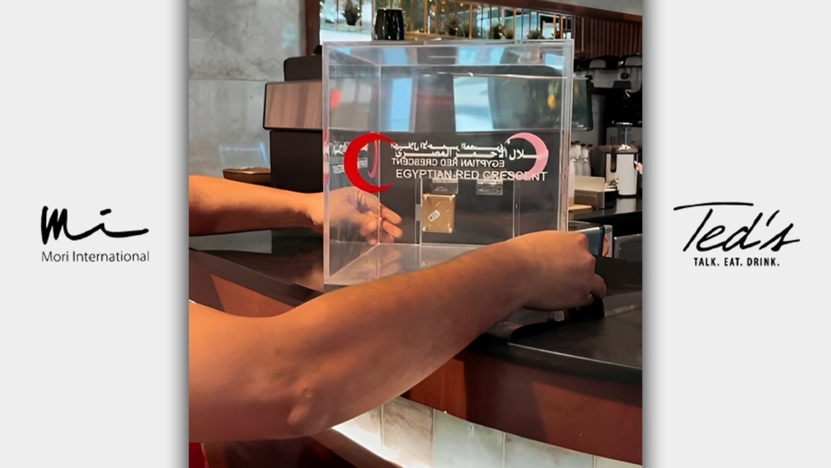 أعلن ted's Restaurant عن وضع صندوق تبرع لصالح الهلال الأحمر المصري في كافة فروعه على مستوى الجمهورية، والذي يمكنك وضع مبلغ من المال في تلك الصندوق والذي سيذهب بالكامل لدعم أهالي غزة في الوقت الراهن سواء بالمواد الغذائية والمستلزمات الطبية.