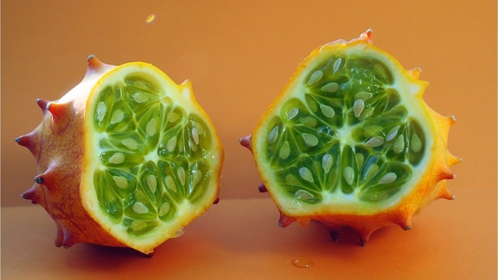 كلنا يعرف أشكال البطيخ المستديرة الخضراء، كما أننا ربما شاهدنا نوعًا أو نوعان من أشكال البطيخ الغريبة كالبطيخة المربعة والبطيخ الأسود، ولكن ربما تكون هي المرة الأولى لك أن شاهدت البطيخ الأفريقي المعروف باسم الكيوانو، فهو لا يأخذ أشكال البطيخ ولا لونه الخارجي أو الداخلي ولا حتى مذاقه.