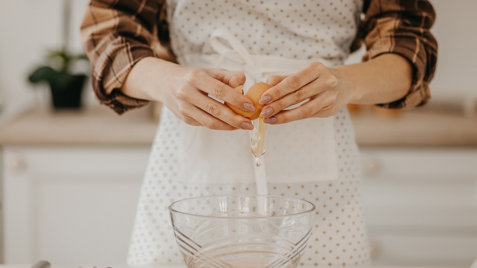 قشر البيض الملتزق بالبيضة وفصل الصفار عن البياض