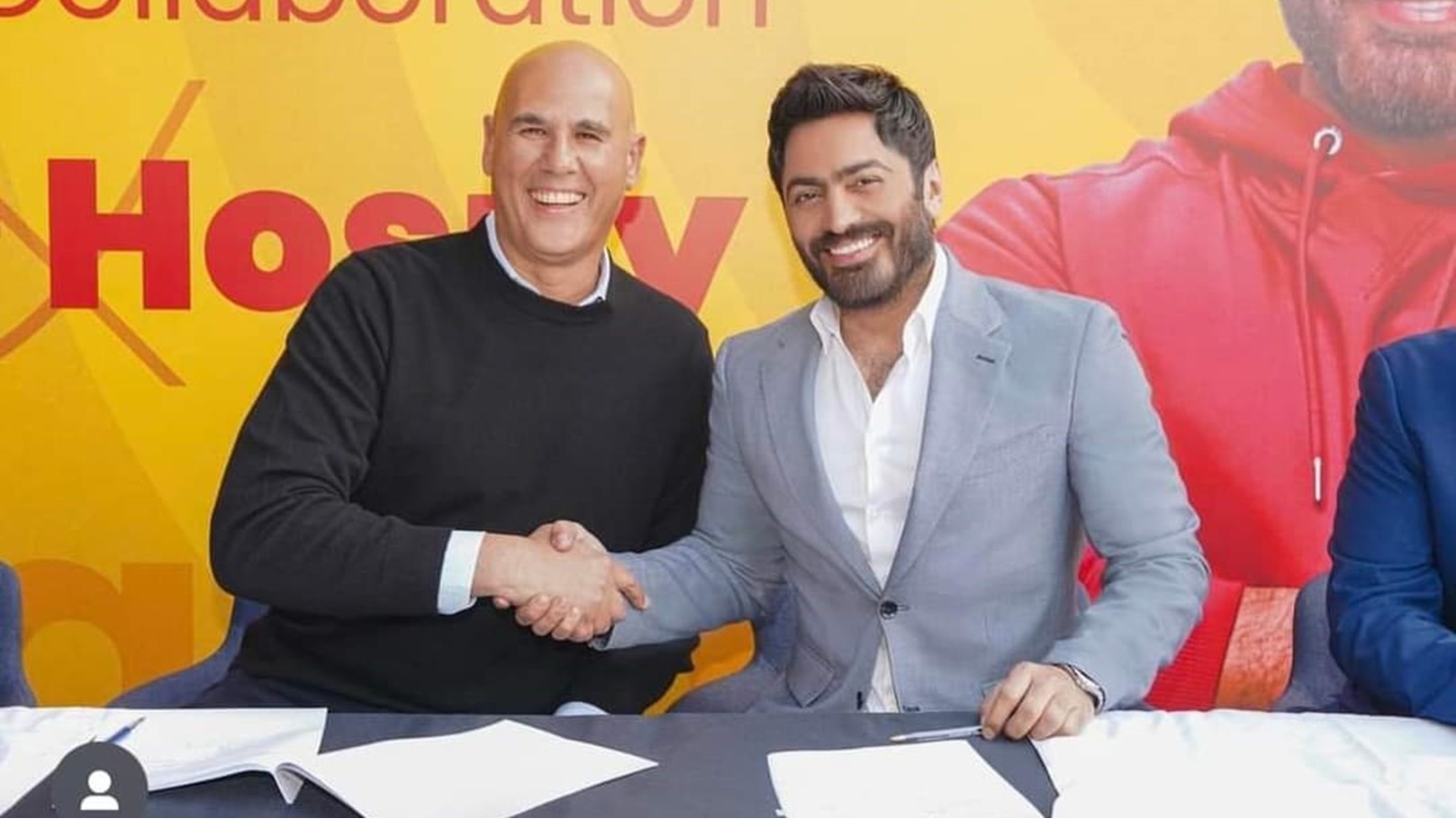 شلباية نشر على انستجرام مجموعة من صور التعاقد مع فريق عمله وكتب نرحب بالنجم تامر حسني في عائلة بيبسيكو وشيبسي.