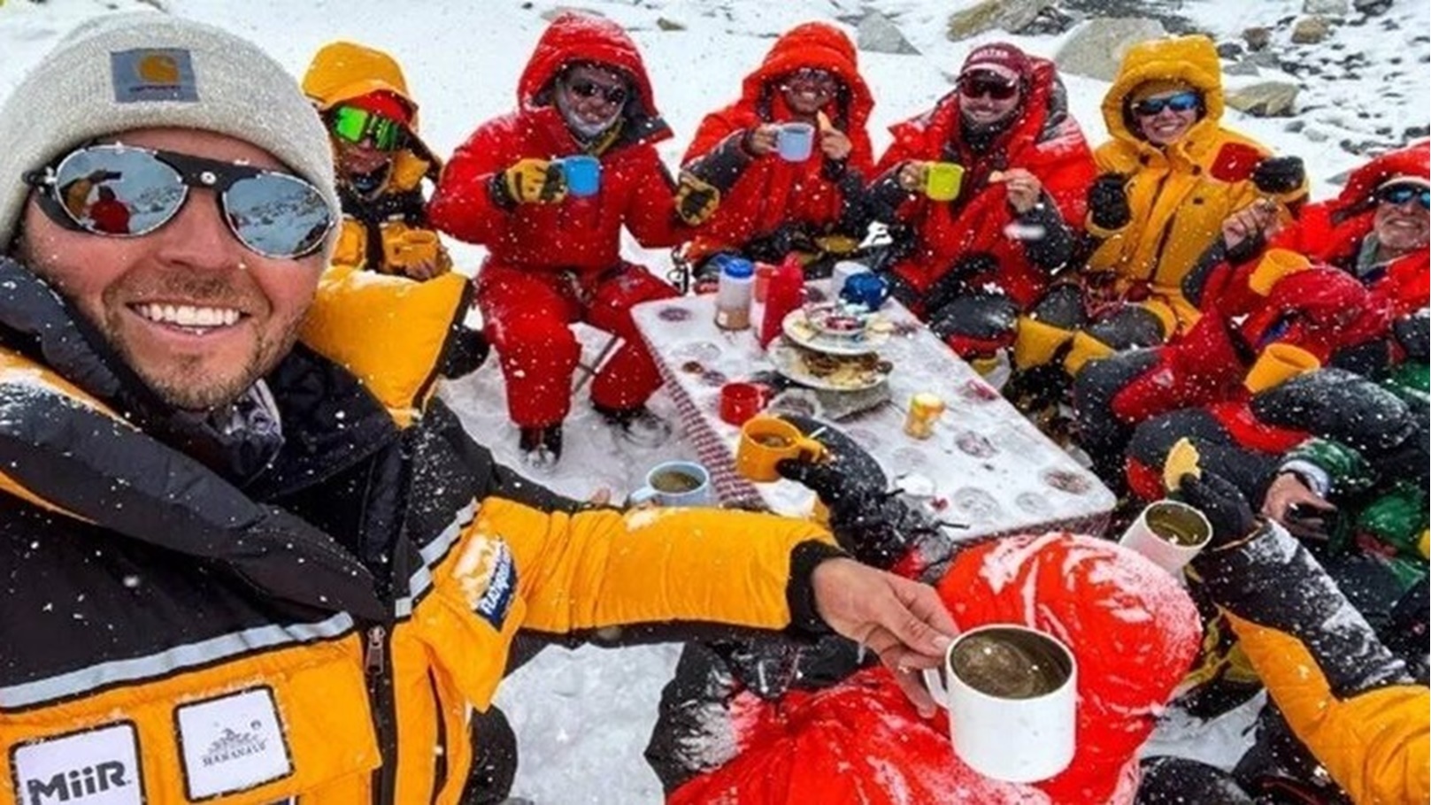 وشارك أحد المشاركين مقطع فيديو للحفلة عبر حسابه على انستجرام، وبدا أن المتسلقين يستمتعون بالقليل من الدفء مع الشاي ووسط تساقط الثلوج، وأظهر مقطع الفيديو متسلقًا يضع طاولة بها أكواب ووجبات خفيفة بينما تجمع مجموعة من المتسلقين حولها، وبدأ أحدهم في صب الشاي بالأكواب، واستمتع جميع المتسلقين بالمشروب الشعبي في الطقس المتجمد.
