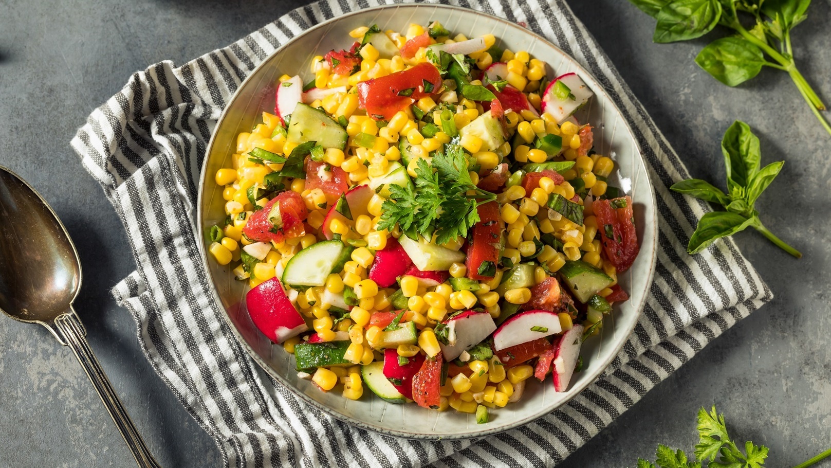 المطعم الذرة المشوي والمسلوق، وسلطات حلوة مصنوعة من الذرة كـ"الفروت سلاط"