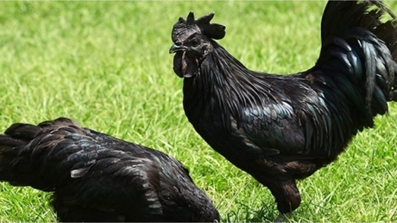 ولكن في الحقيقة هناك دجاج ذو لون أسود تمامًا من الريش الأسود اللامع حتى العظام