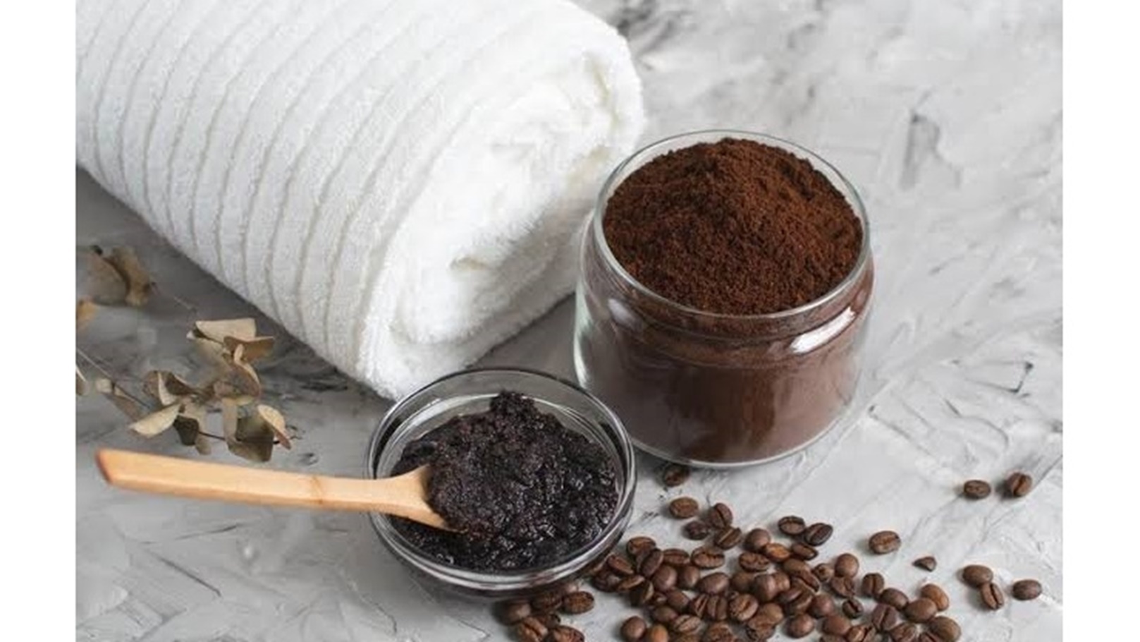 يمكن استخدام مزيج من القهوة المطحونة وزيت جوز الهند أو زيت الزيتون كمقشر طبيعي للجسم. يساعد في إزالة الخلايا الميتة وتنقية الجلد وتحسين ملمسه.