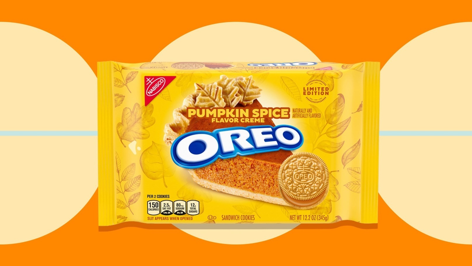 ستكون هذه النكهة من أوريو ذات إصدار محدود الذي يميز الكوكيز بشكل ذهبي من أوريو كقاعدة شطيرة (على عكس الأوريو التقليدية بالشوكولاتة) ثم يتم ملؤه "بكريم القرع بنكهة التوابل" - متاحًا في المتاجر في جميع أنحاء الولايات المتحدة حتى نفاد الكمية.