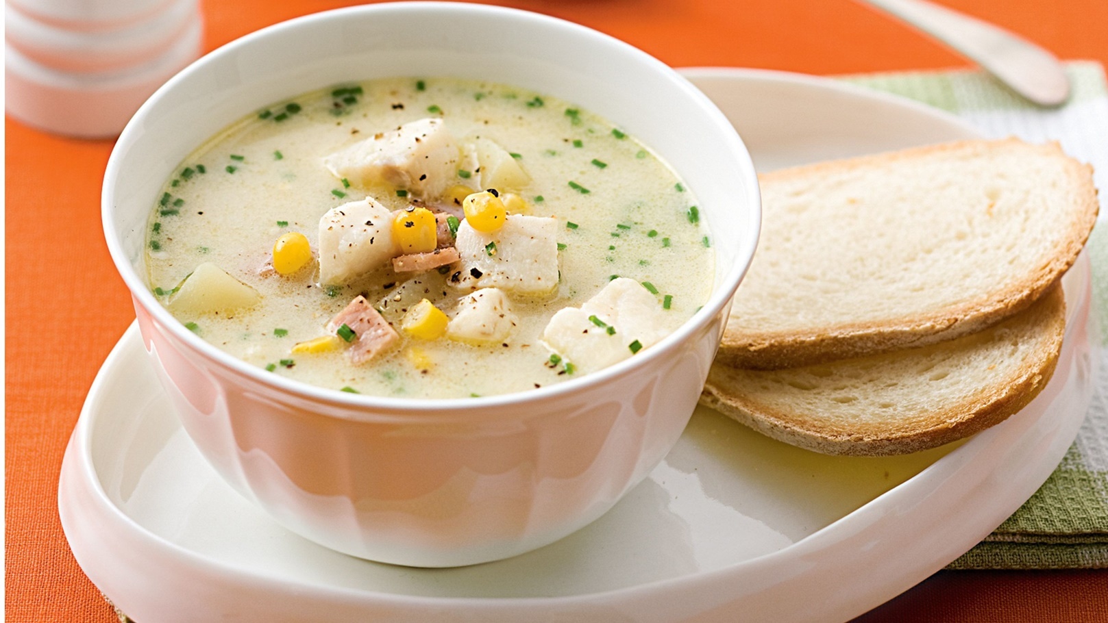 المأكولات البحرية وخاصة البطلينوس - نوع من المحار- ، ويُصنع عادةً من الحليب أو الطماطم واللحم والبصل والخضروات الأخرى، وقد اشتهر هذا الطبق في جميع أنحاء العالم خاصة في المدن