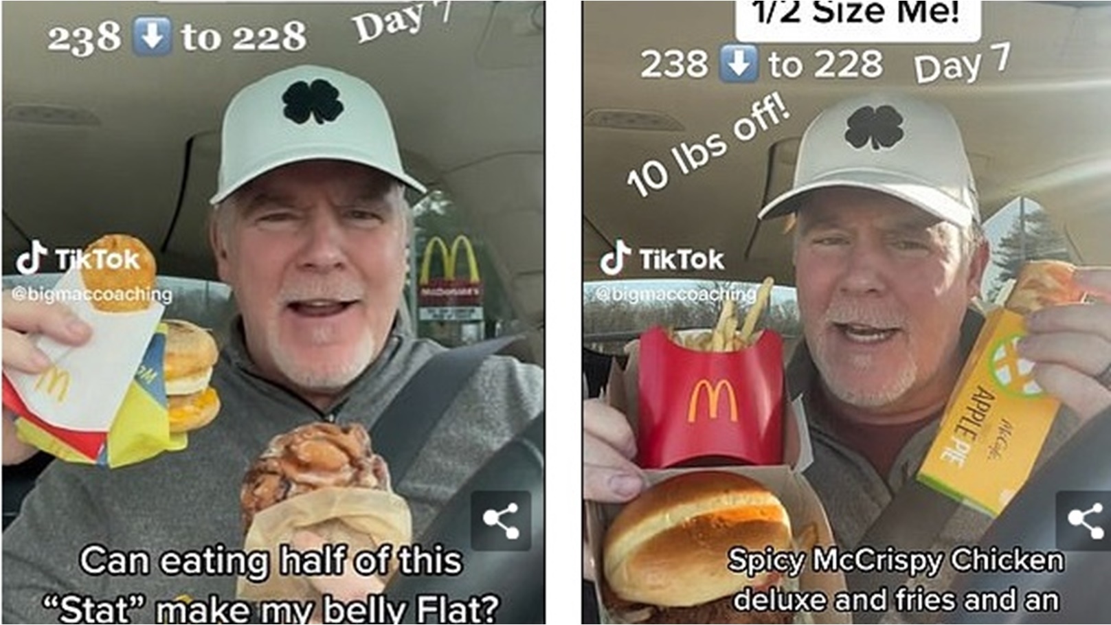 كجم، موضحا أنه سيتبع نظام غذائي جديد في تناول ماكدونالدز على فترات اليوم، وقال