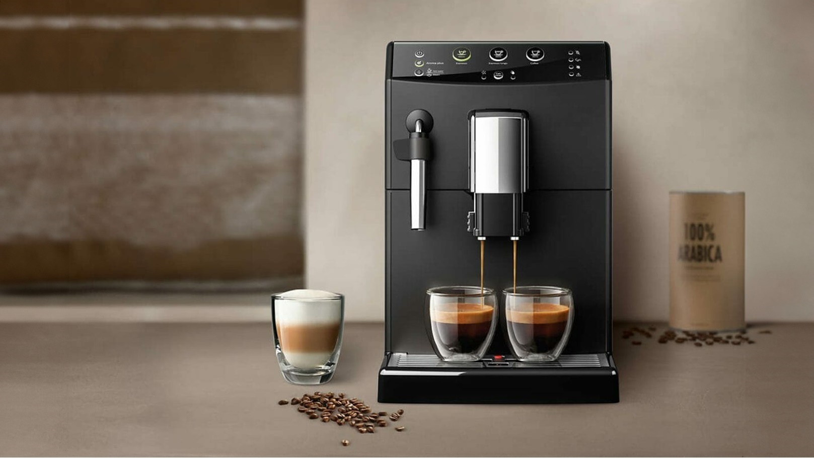 توفر آلة الإسبريسو الأوتوماتيكية الجديدة قهوة عالية الجودة ومجموعة واسعة من خيارات المشروبات، حيث تمكن المستخدمين من الاستمتاع بالنكهات الرائعة بلمسة واحدة على شاشة Active Select الكبيرة والسهلة الاستخدام.