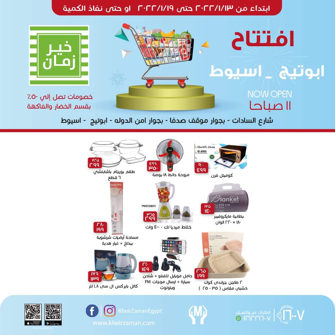 تقدم سلسلة «خير زمان»، عروضًا جديدة بمناسبة افتتاح فرعها الجديد في محافظة أسيوط، بتخفيضات تصل حتى 50%.