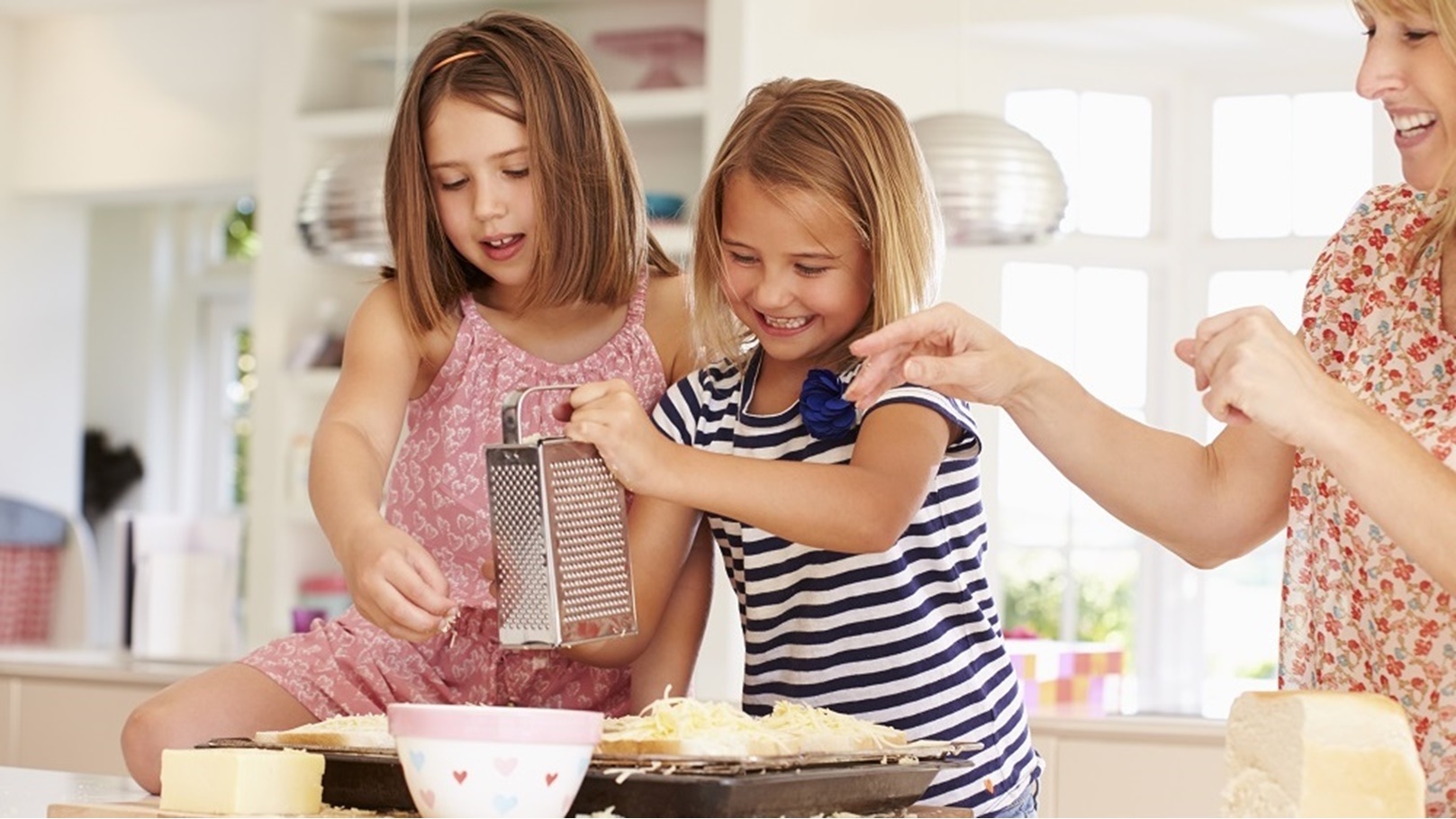 girls-with-mother-making-cheese-on-toast-2021-08-26-16-12-46-utc