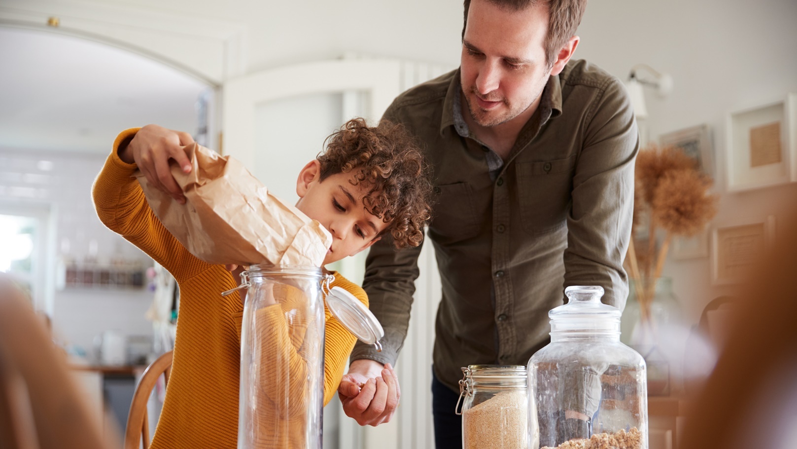 father-helping-son-to-refill-food-containers-at-ho-2021-08-26-16-15-09-utc