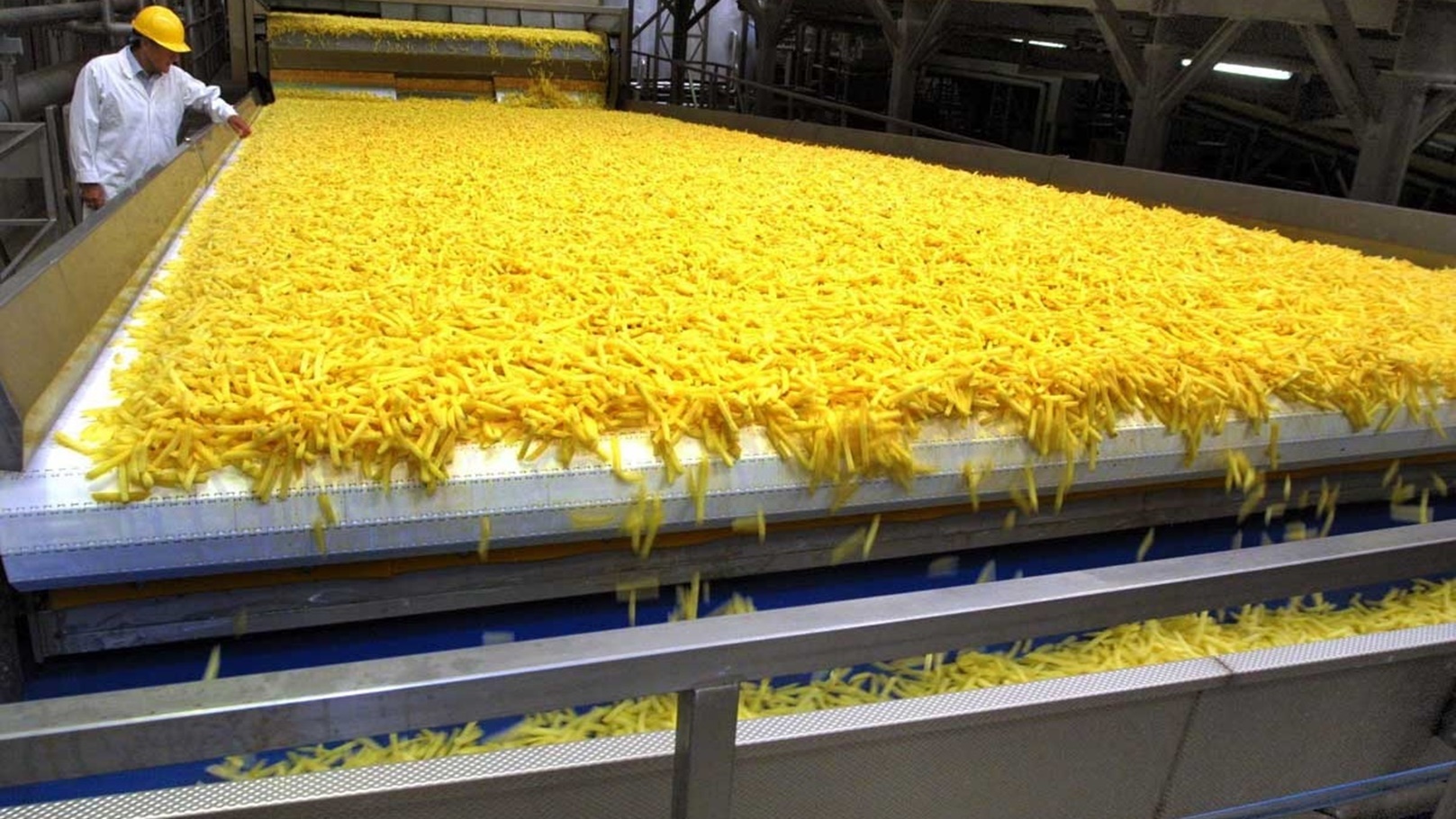 تقشير البطاطس وتجميدها، ومن ثم قليها نصف مقلية، وتجميدها وتوزيعها على المحال التجارية