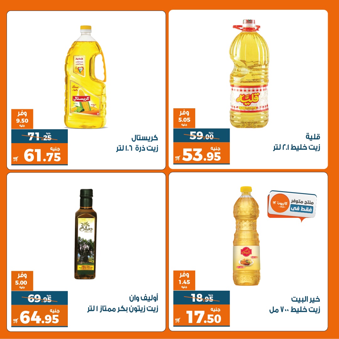زيت ذرة كريستال 1.6 لتر بسعر 61.75 جنيه بدلاً من 71.25 جنيه.