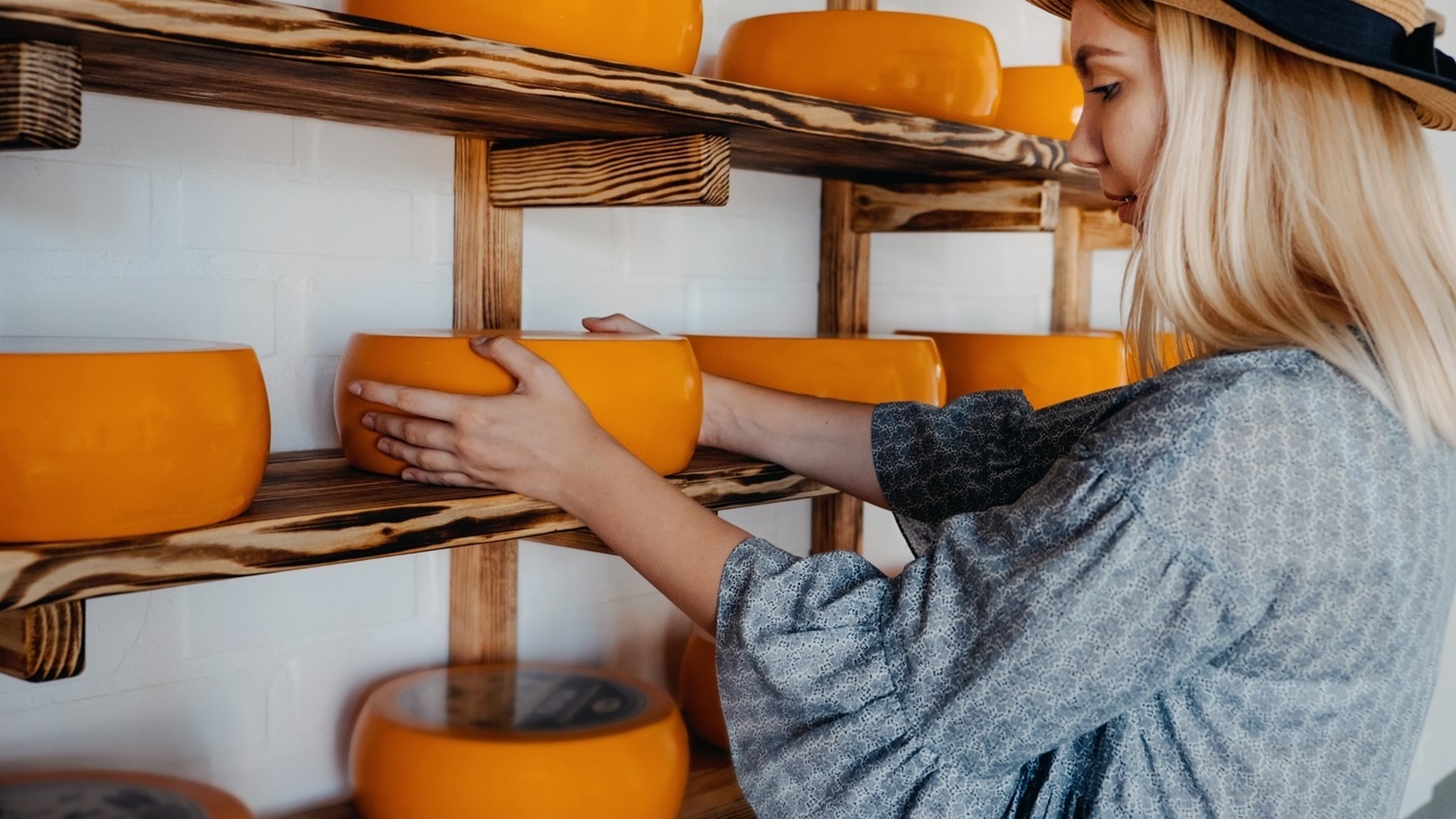 goat-cheese-wheel-in-female-hands-on-rack-in-facto-2021-08-29-23-21-59-utc