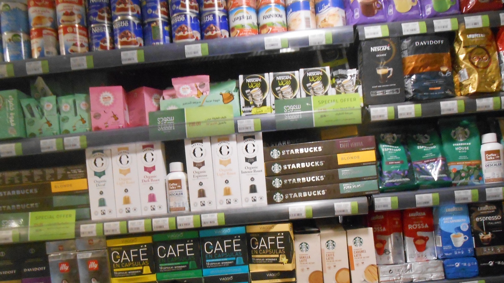 يوجد على أرفف سلسلسة سعودي ماركت أنواعا عديدة من البن