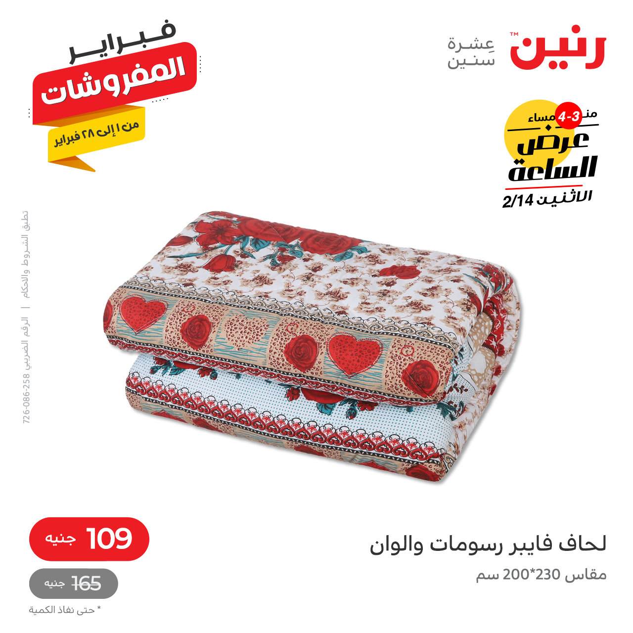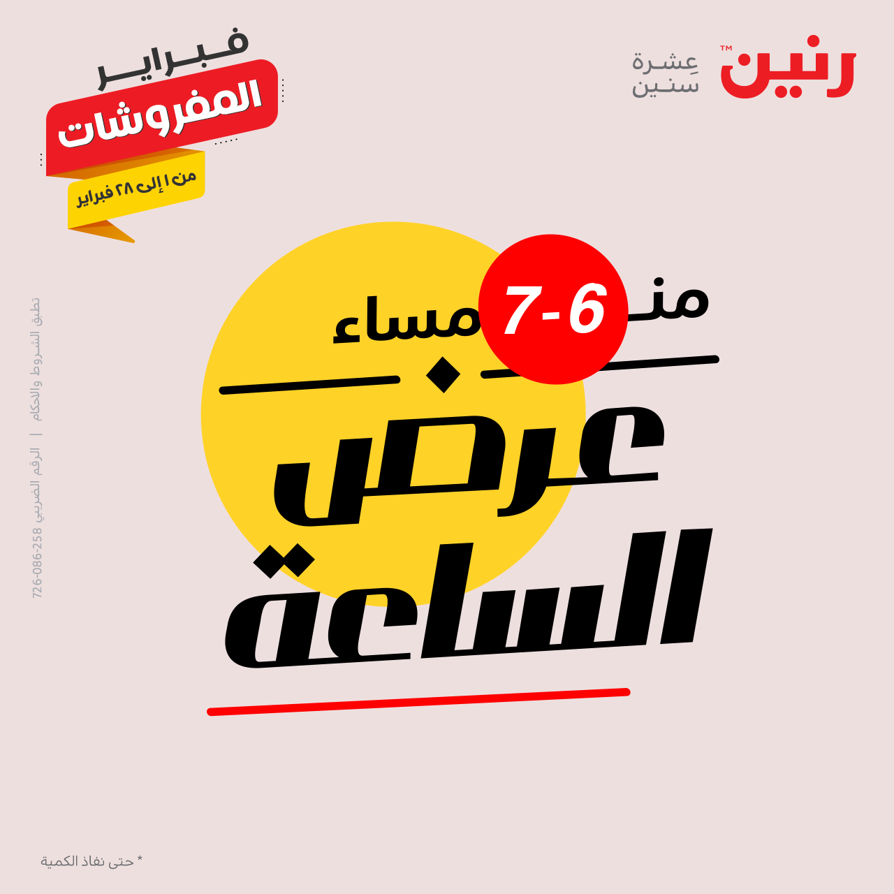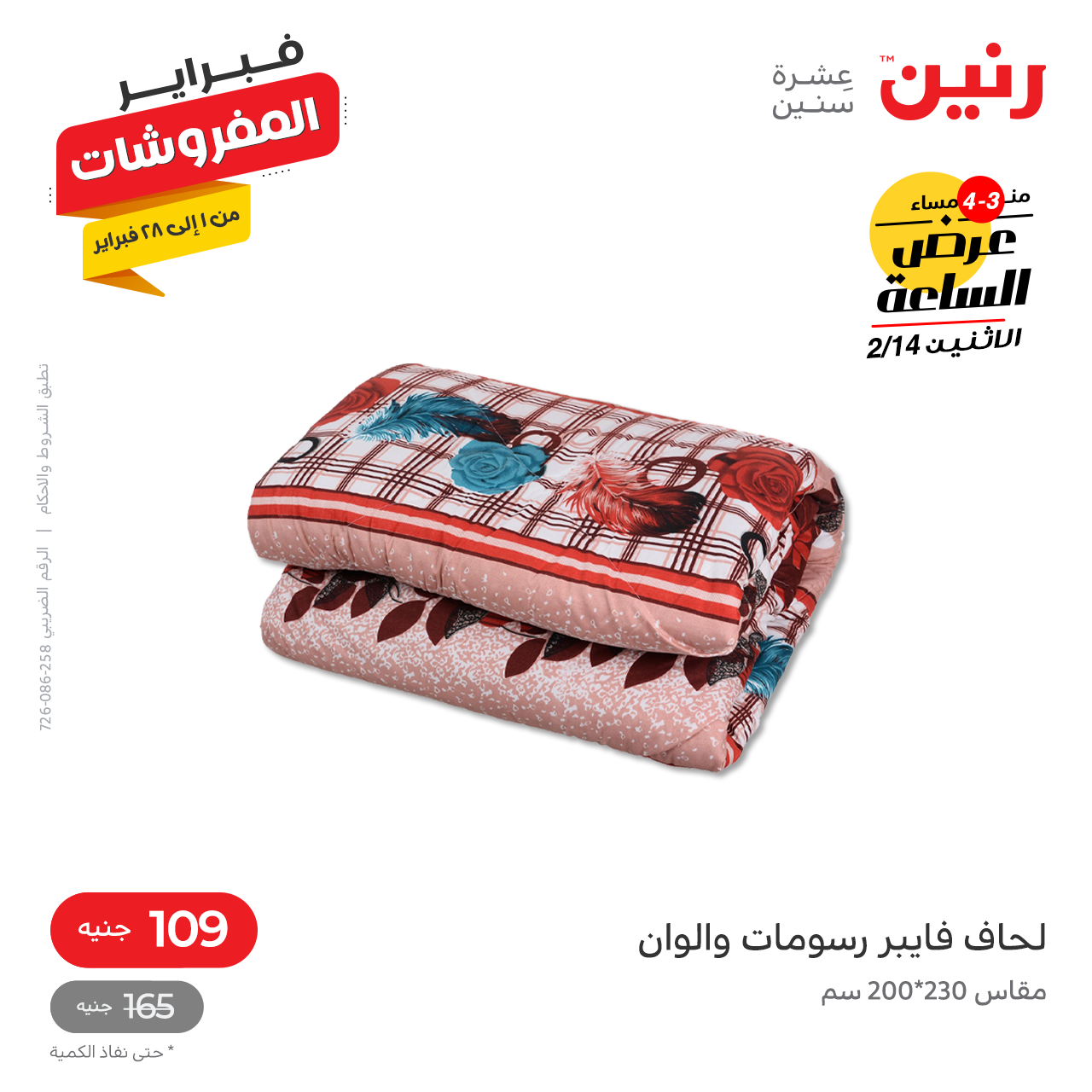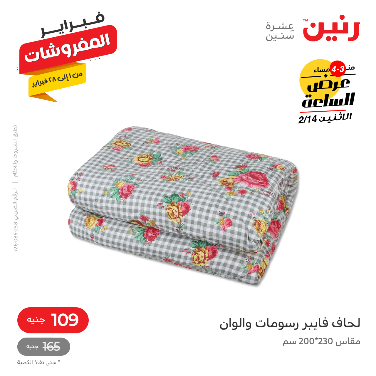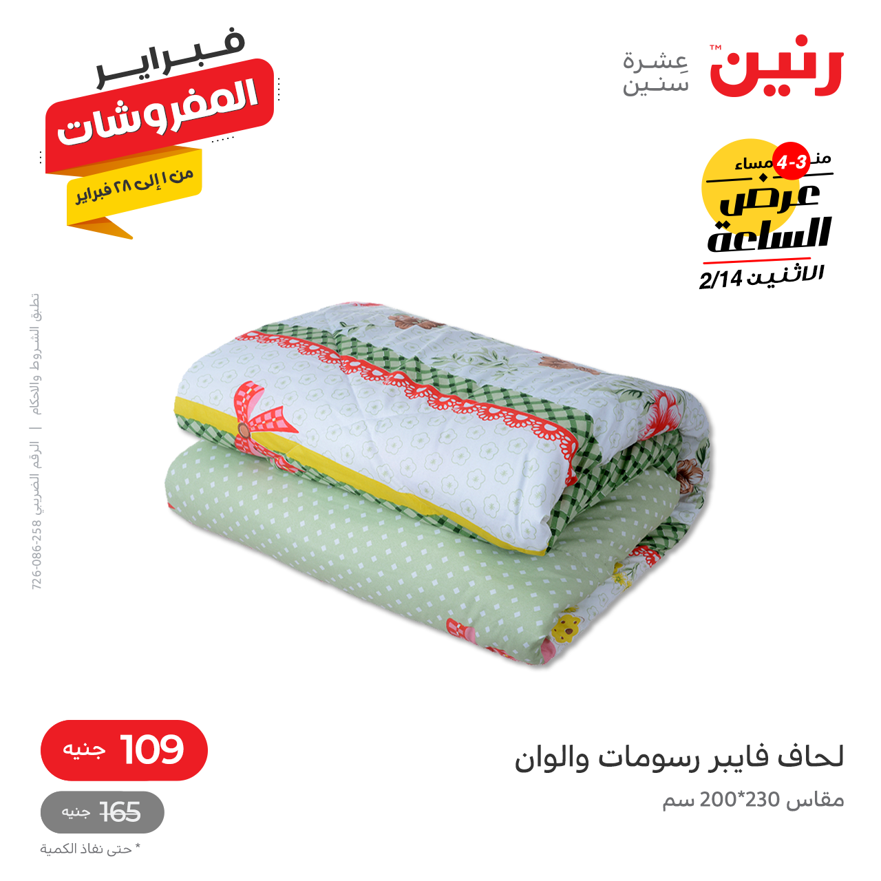 سلسلة محلات «رنين» أعلنت عن عروض جديدة على العديد من المنتجات، اليوم الأحد، خلال يومي الثلاثاء والأربعاء المقبلين، ومن بين التخفيضات التي قدمتها دفايات أطفال وستائر وأطقم ملايات وبطاطين، وأطقم عشاء وأجهزة منزلية، وأدوات عناية شخصية.