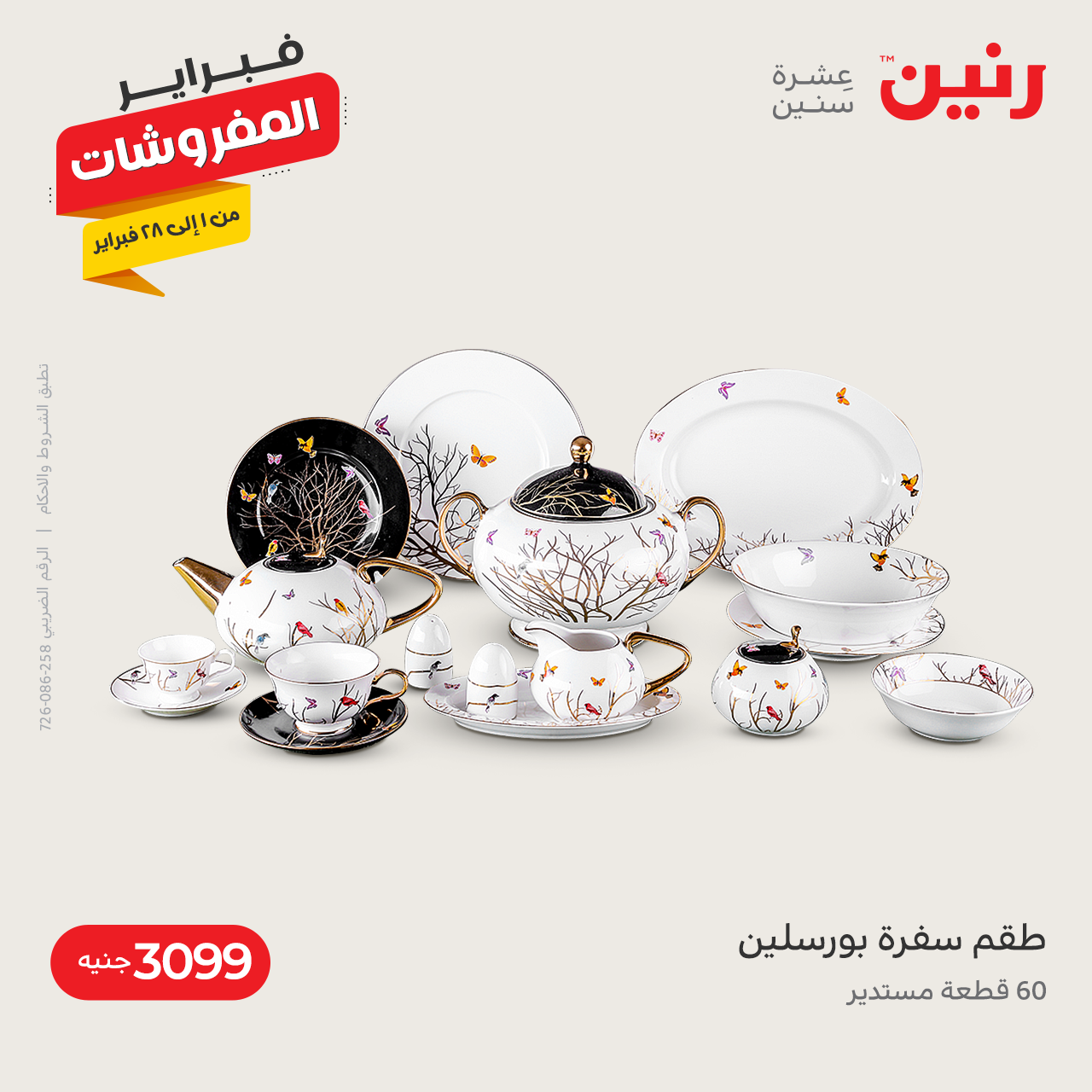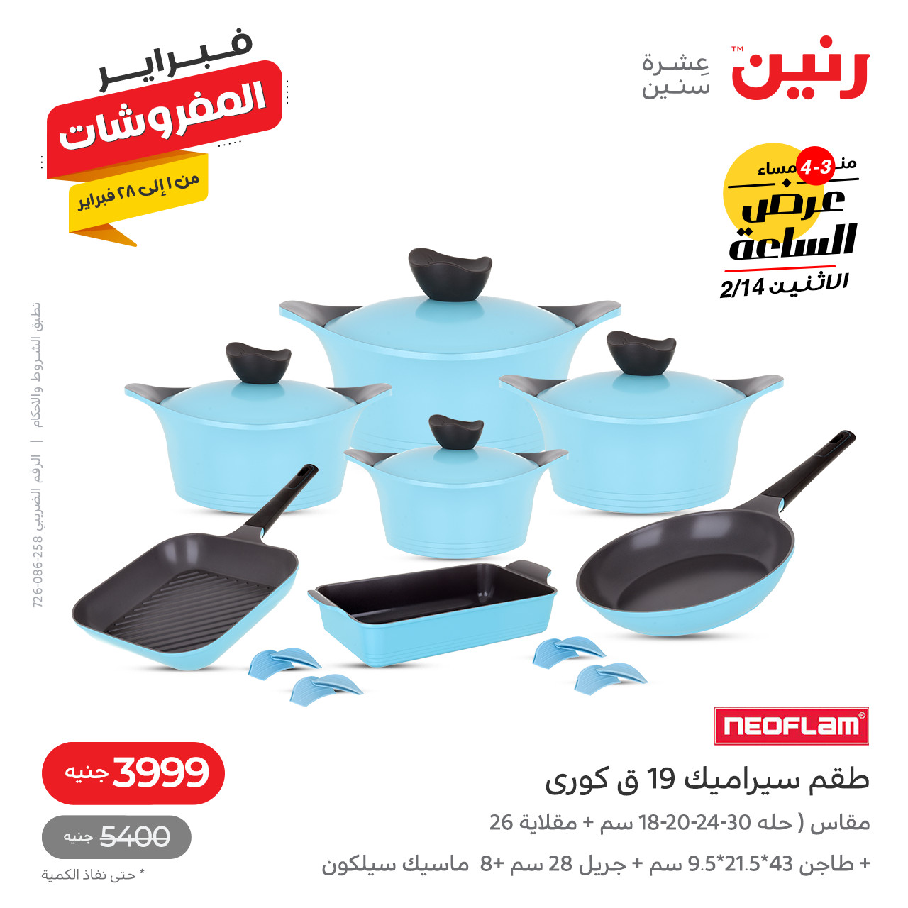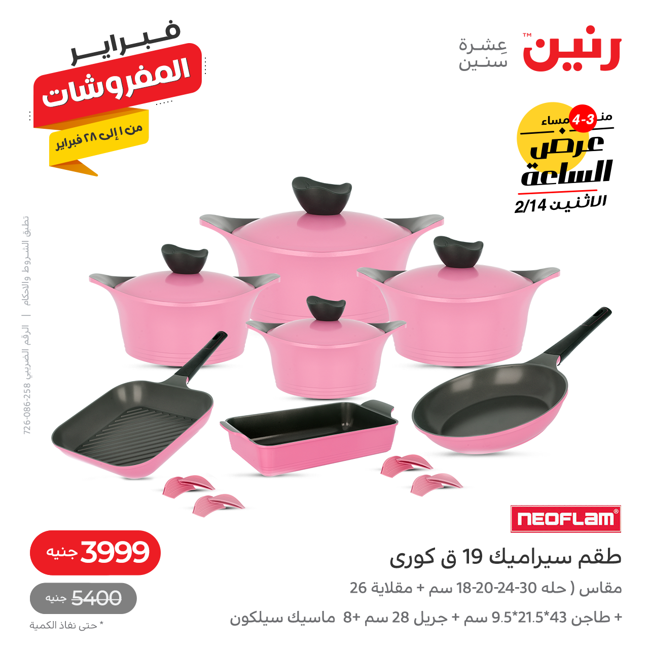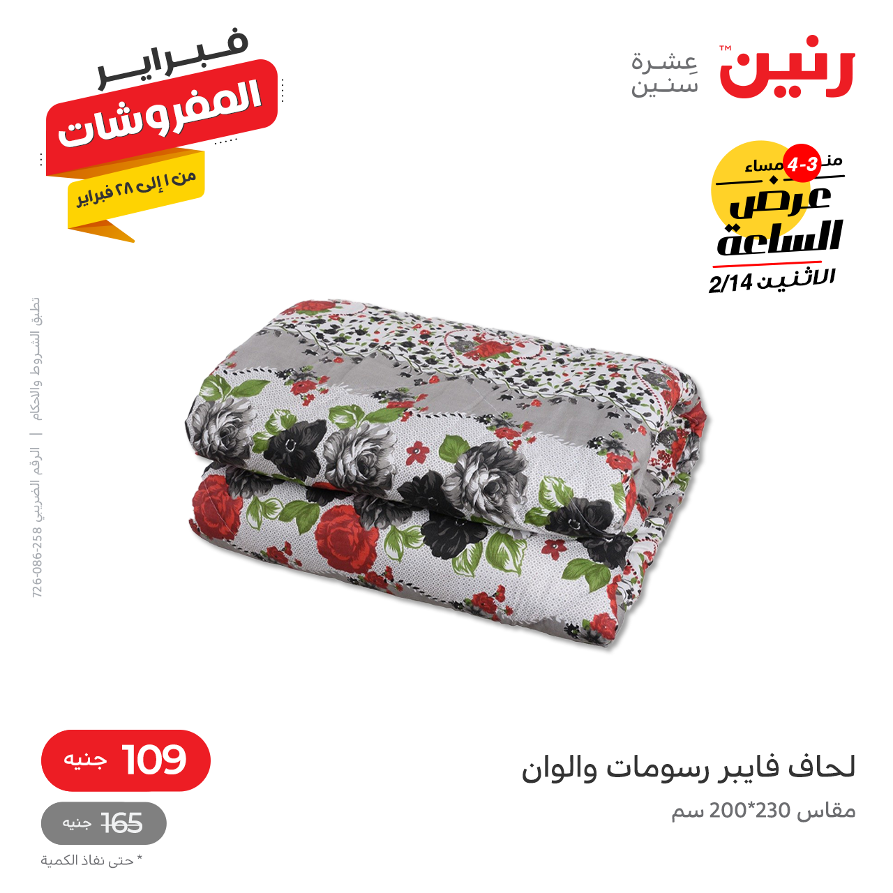 سلسلة محلات «رنين» أعلنت عن عروض جديدة على العديد من المنتجات، اليوم الأحد، خلال يومي الثلاثاء والأربعاء المقبلين، ومن بين التخفيضات التي قدمتها دفايات أطفال وستائر وأطقم ملايات وبطاطين، وأطقم عشاء وأجهزة منزلية، وأدوات عناية شخصية.