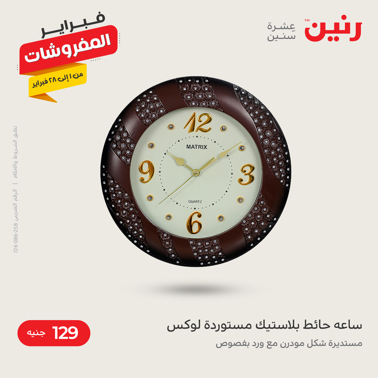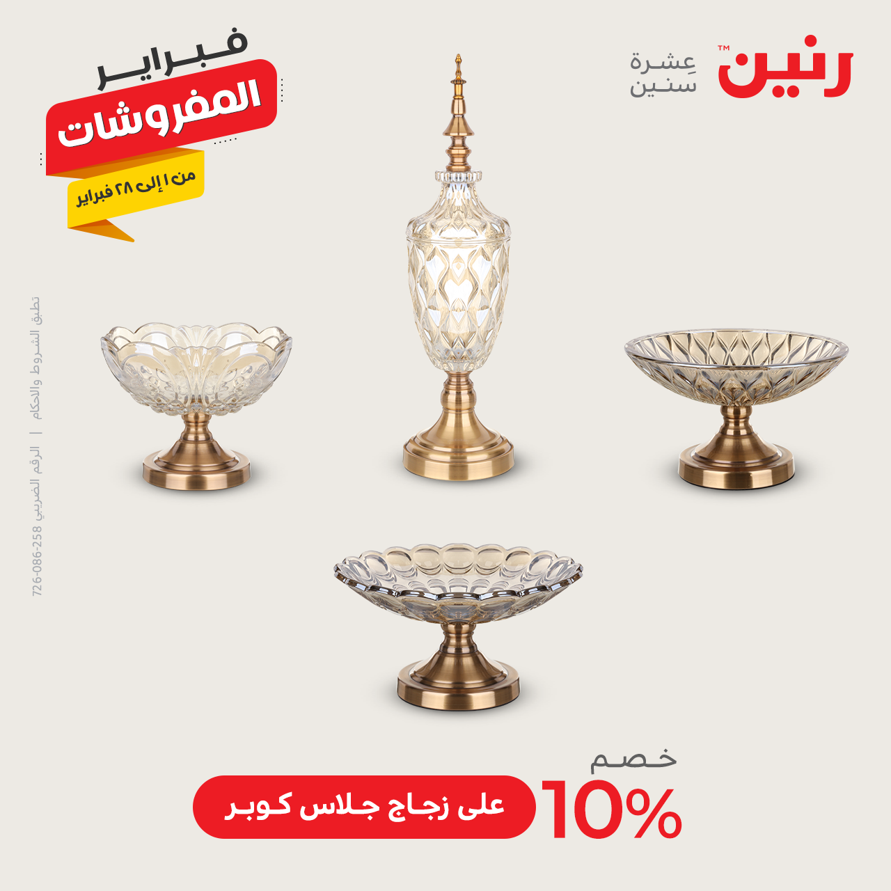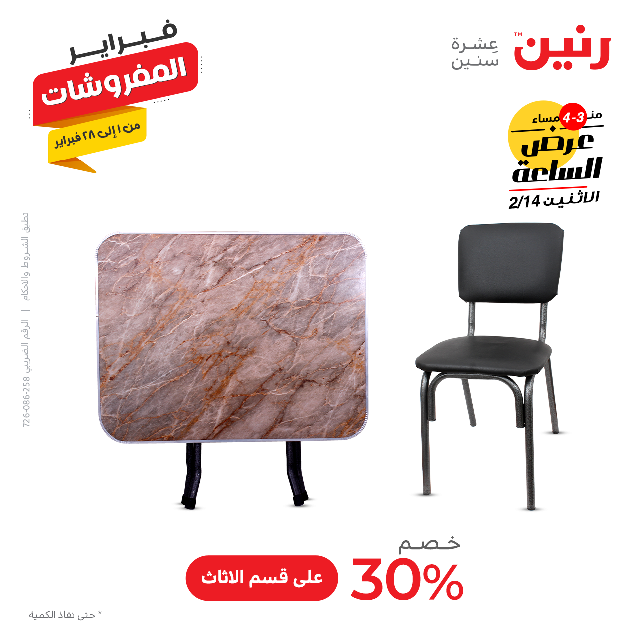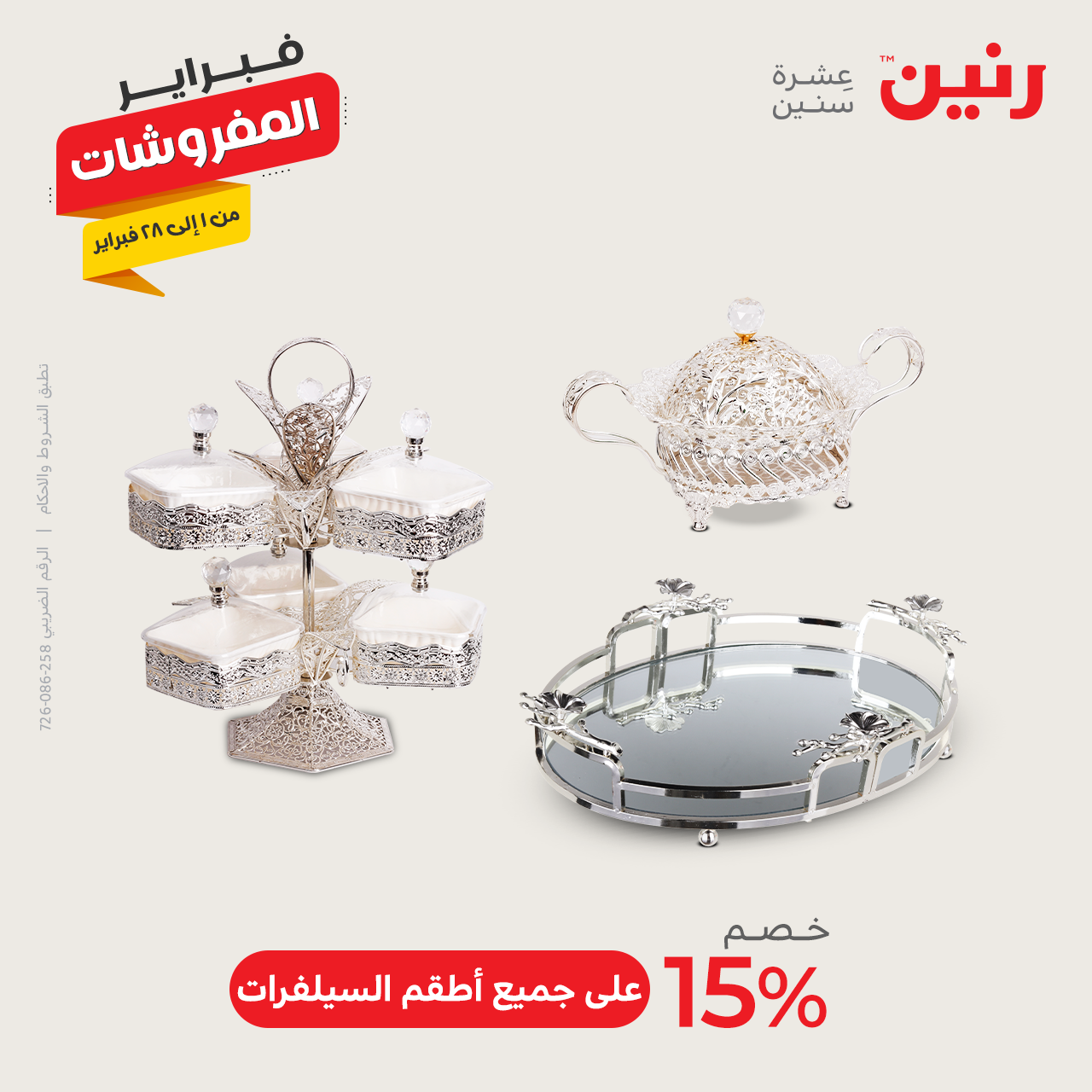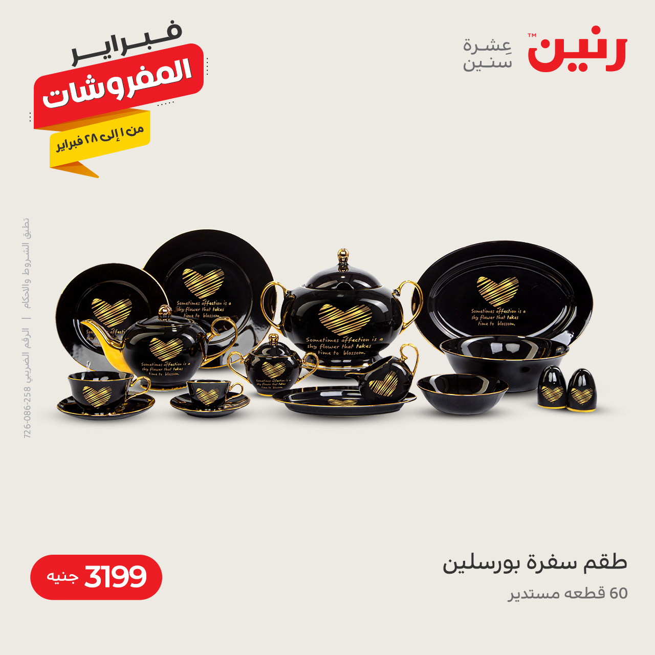سلسلة محلات «رنين» أعلنت عن عروض جديدة على العديد من المنتجات، اليوم الأحد، خلال يومي الثلاثاء والأربعاء المقبلين، ومن بين التخفيضات التي قدمتها دفايات أطفال وستائر وأطقم ملايات وبطاطين، وأطقم عشاء وأجهزة منزلية، وأدوات عناية شخصية.