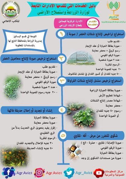 للحصول على أي من هذه الخدمات، والتي تتم من خلال أقسام البساتين بمديريات الزراعة