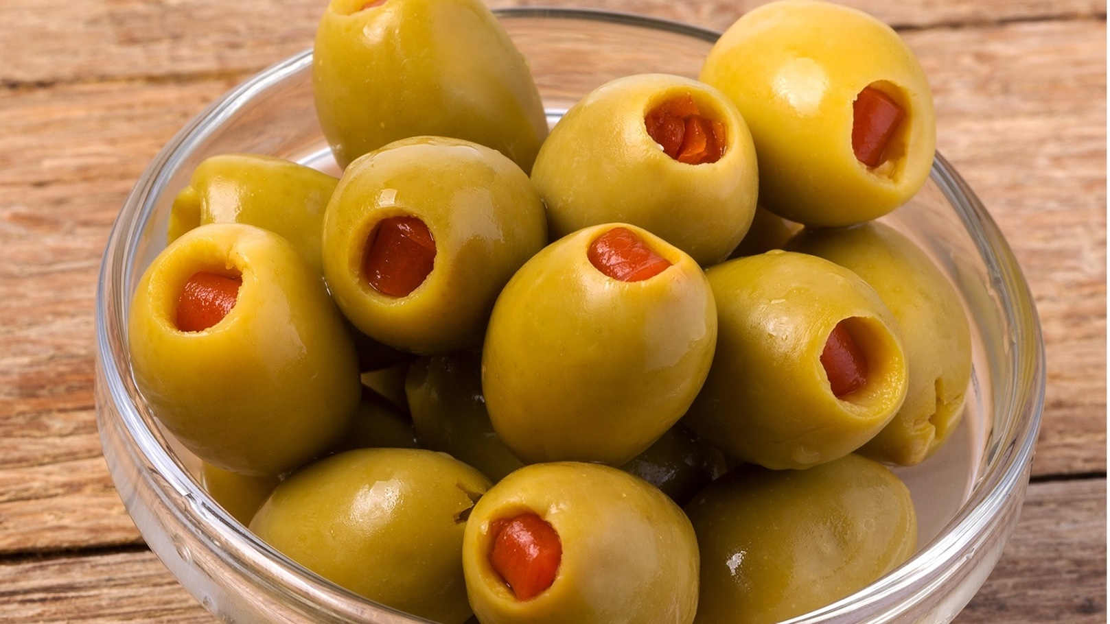 الزيتون المخلل، لاسيما المخلي والمحشي، وتُعد الأنواع اليونانية أشهر الأصناف، إذ تشتهر