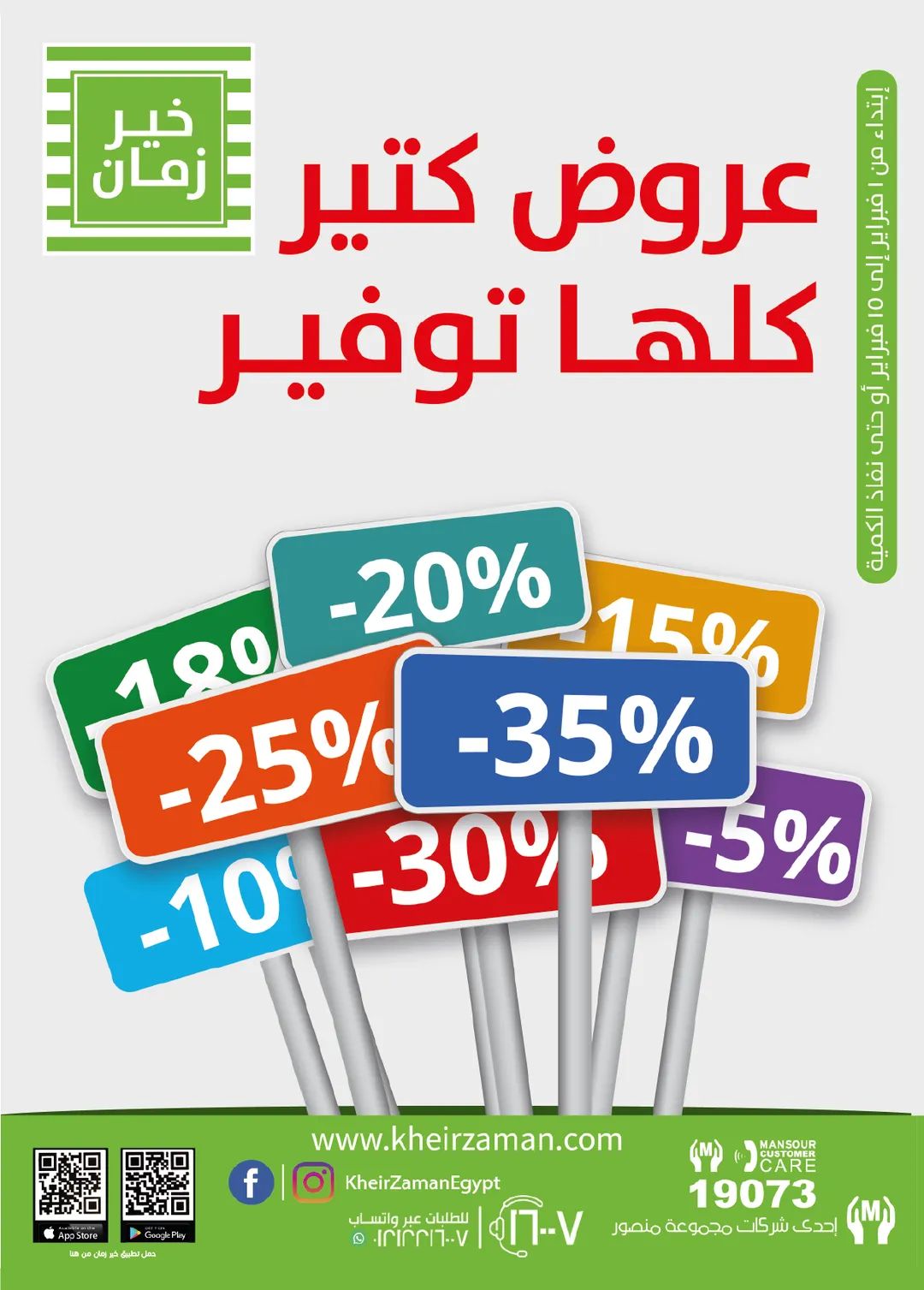 طرحت سلسلة «خير زمان» تخفيضات على عدد من السلع الغذائية والأدوات المنزلية، من خلال مجلة عروض شهر فبراير، والتي تبدأ اليوم وتستمر حتى 15 من الشهر الجاري.