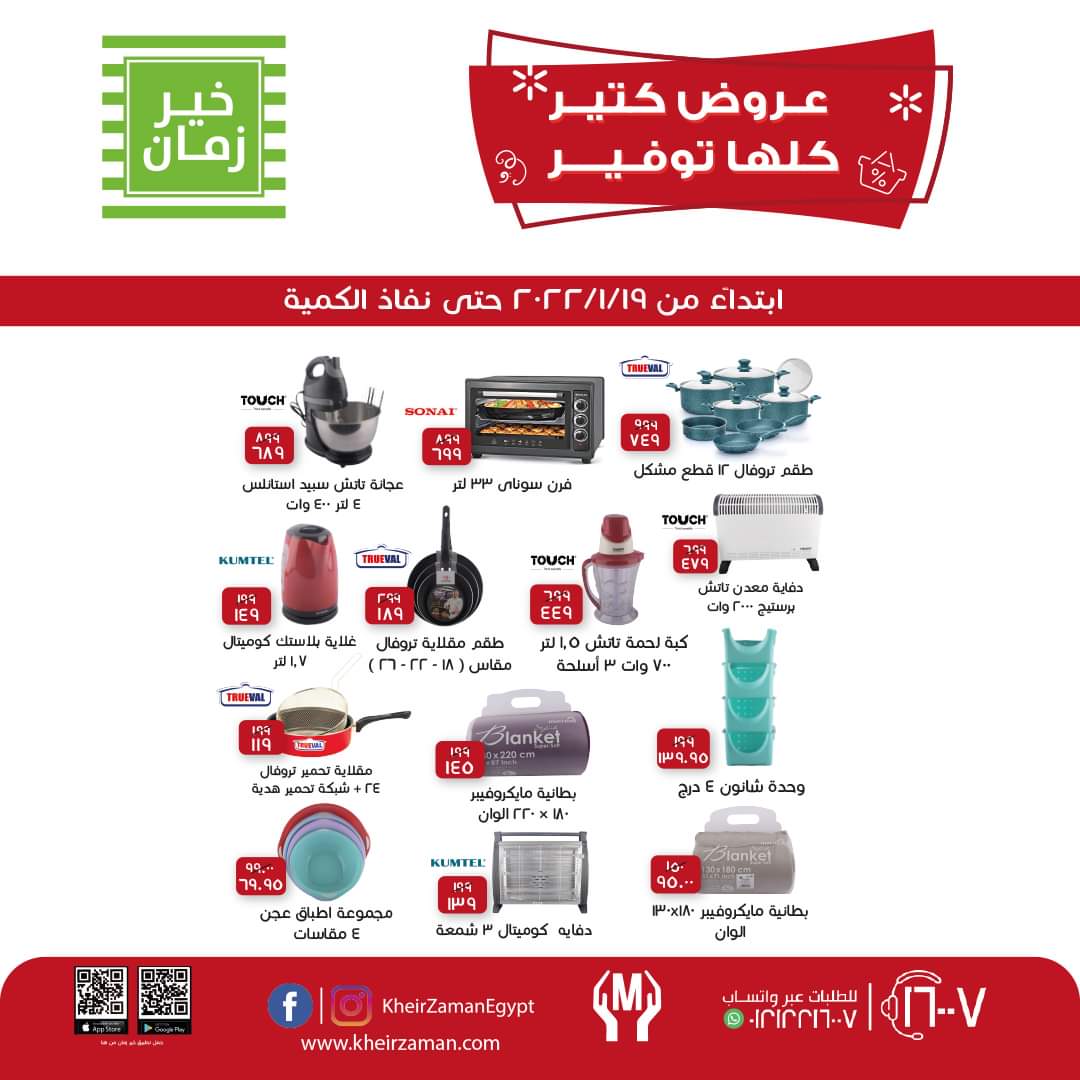 وتضم فروع خير زمان تشكيلات متنوعة في أكثر من قسم منها قسم اللحوم وقسم الألبان ومنتجاتها وقسم البقالة وقسم الخضروات والفاكهة وكافة الأقسام الأخرى التي تضم داخلها تشكيلات وأصناف متعددة من كافة السلع والمنتجات.. وإليكم العروض.