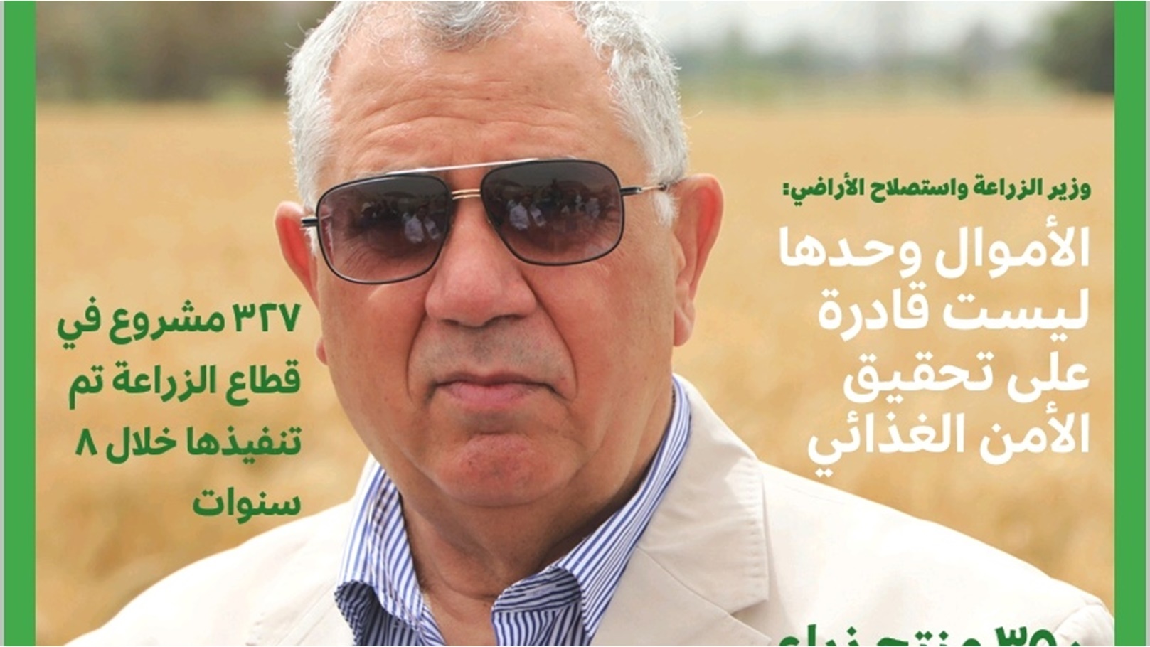 كذلك ملف خاص، حول مشروع زراعة قصب السكر بالشتل، والتوجيهات الرئاسية في هذا الشأن، فضلا عن تقرير حول الحملة القومية للنهوض بمحصول القمح، وجهودها لزيادة انتاجية المحصول، وتقديم الخدمات الإرشادية لمزراعي المحصول.