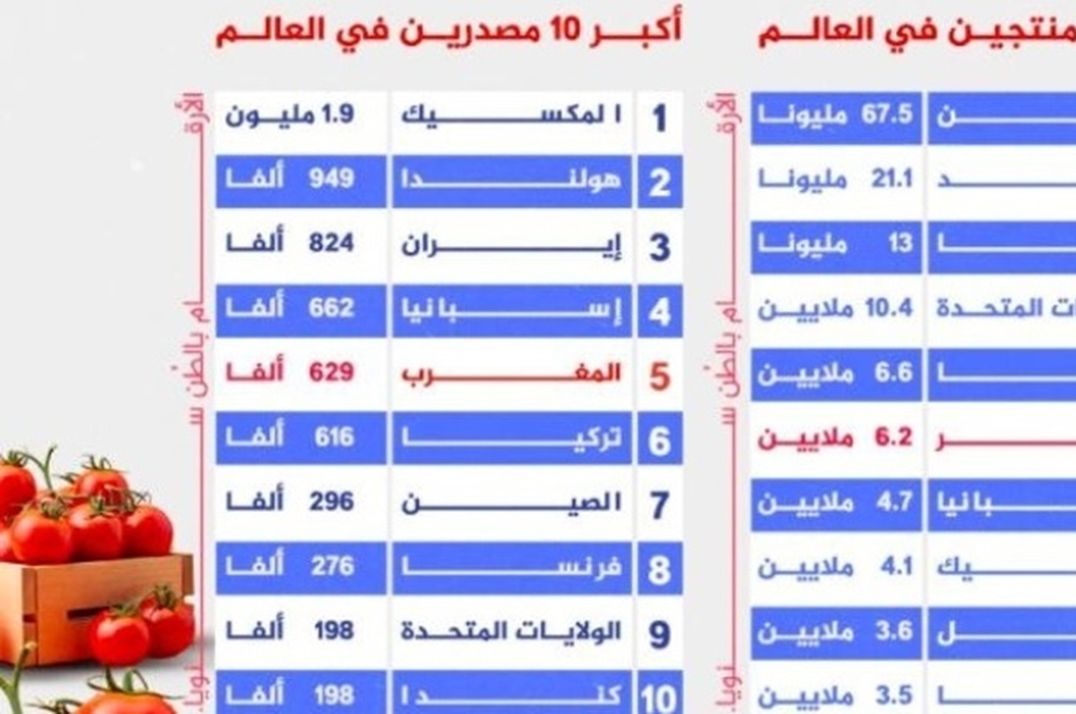 ماهي أكبر الدول العربية المنتجة لمحصول الطماطم؟