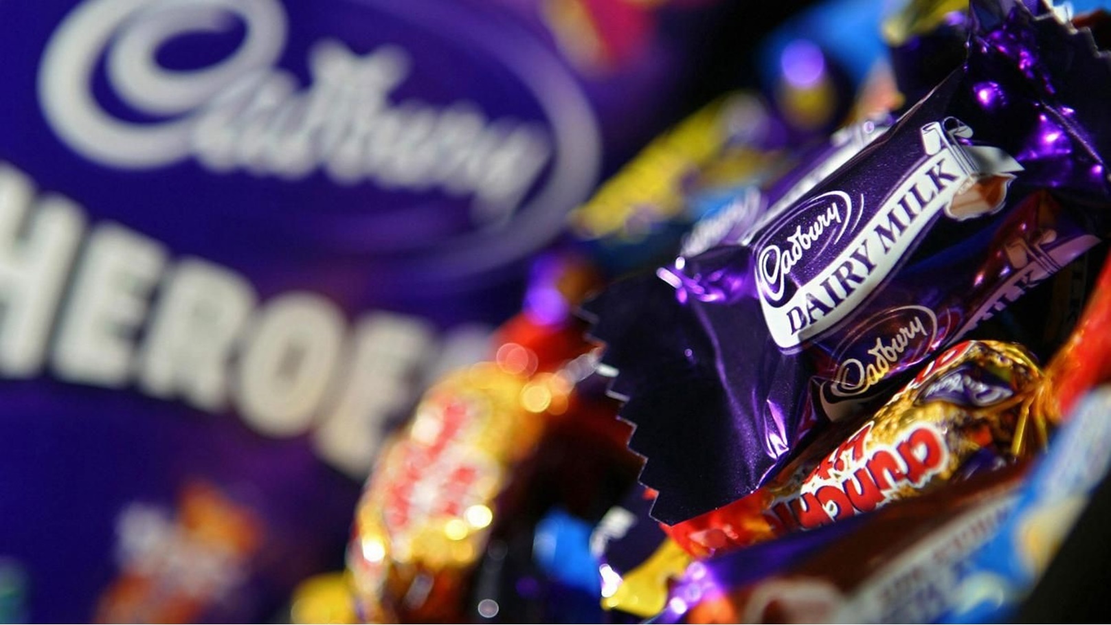 شوكولاتة كادبوري هيروز (ستة عبوات) ، وحلوى شوكولاتة كادبوري ديري.