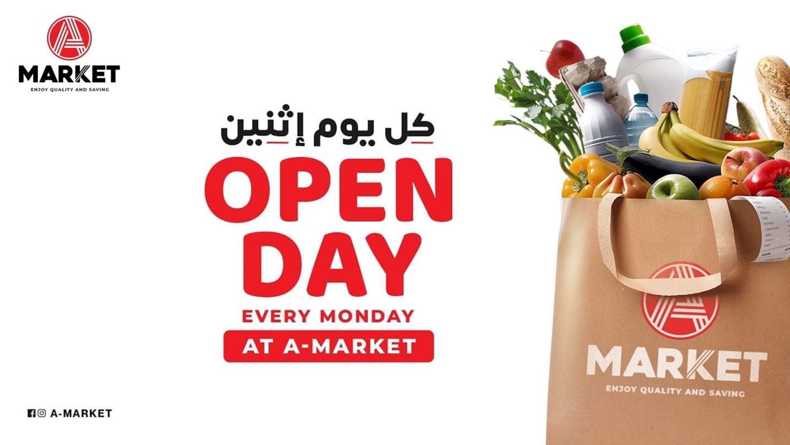 طرحت سلسلة فروع "A Market" عروض حصرية ومميزة على بعض السلع المختارة من الأقسام كاللحوم والدواجن، والخضار والفاكهة، والأجبان والألبان، ومنتجات البقالة، وذلك في كل يوم أثنين من الأسبوع إبتدءاً من يوم الأثنين 9 أكتوبر تحت أسم "Open Day"، حيث أن هذا العرض ساري في جميع فروعه على مستوى الجمهورية.
